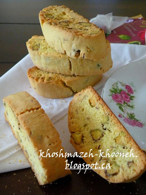 بیسکاتی هم که معرف حضورتون هست. بیسکویت ایتالیایی که دو مرحله پخت داره و به خاطر خشک بودن کنار چای خیلی میچسبه. البته بیسکاتی های من در واقع مینی بیسکاتی هستند.